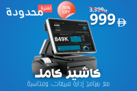 عرض لفترة محدودة كاشير كامل يشمل جهاز كاشير + طابعة فواتير + قارئ باركود + درج نقدي مع برنامج إدارة مبيعات ومحاسبة متكامل السعر 999 درهم فقط لفترة محدودة سارع بالاتصال لمعرفة التفاصيل