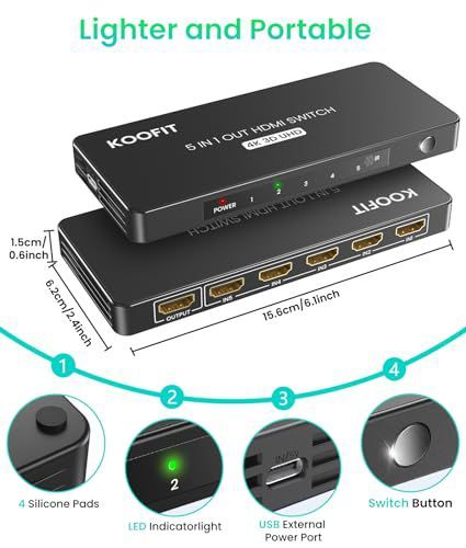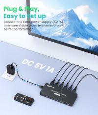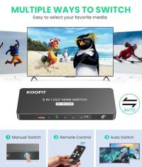 5 in 1 hdmi switch, 5 input and 1 output, you can use different devices and switch it manually and by remote also