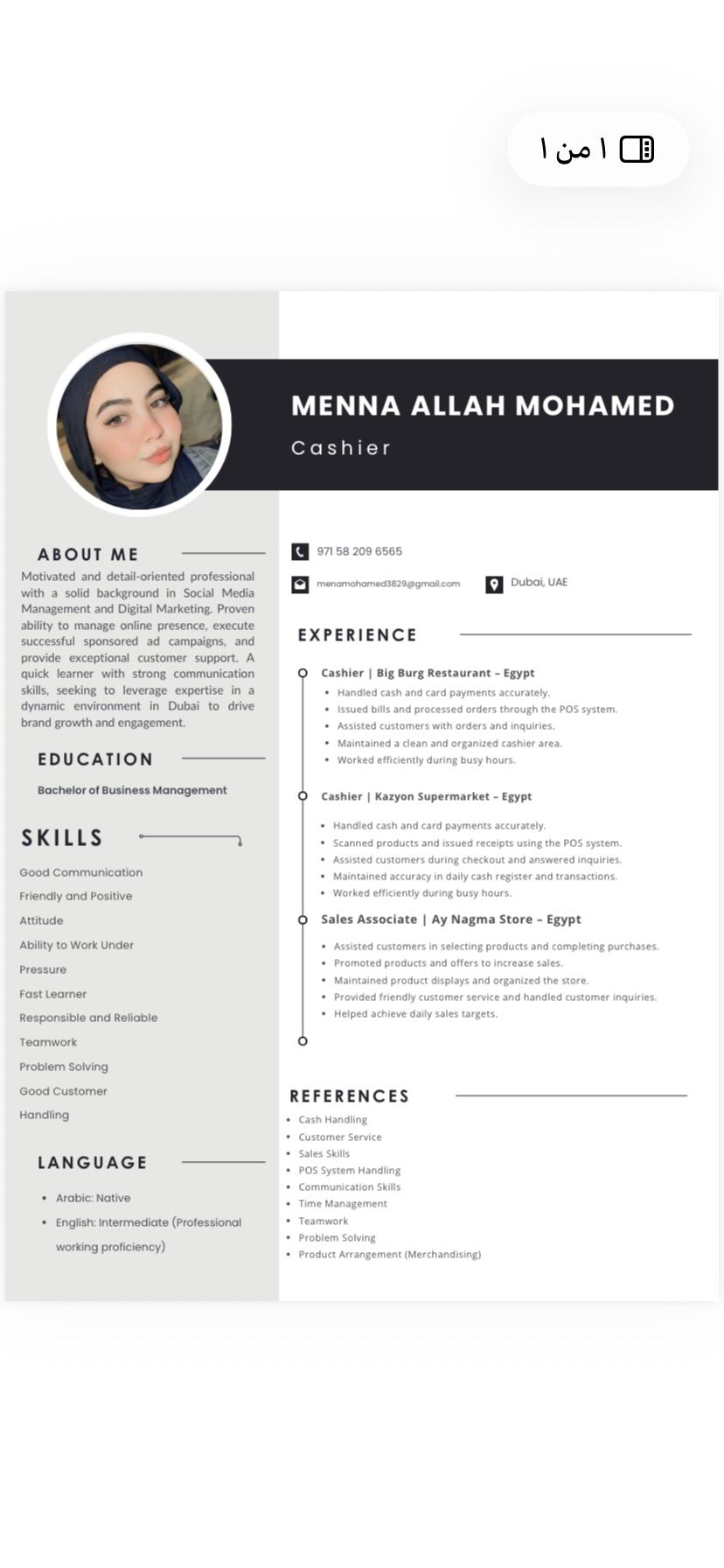 ابحث عن عمل في مدرسة مشرفه باص أو كاشير أو مسؤول عن سوشيل مديا