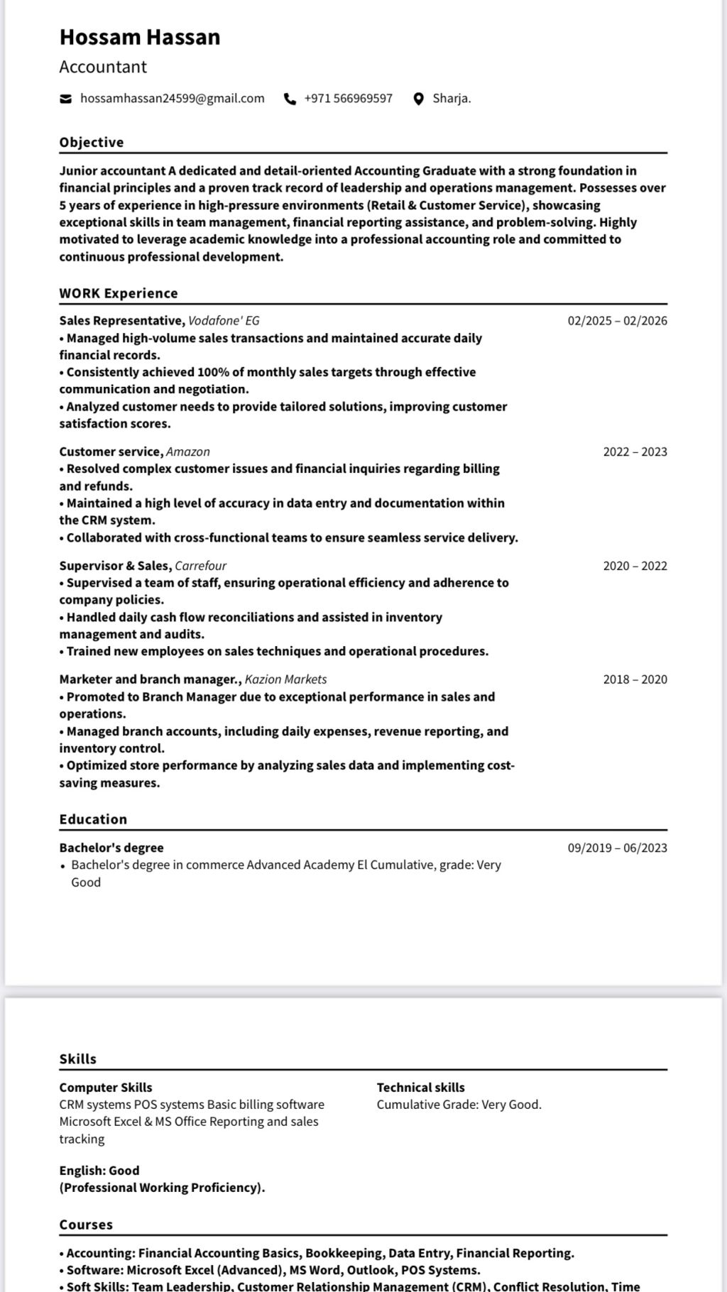 بدور على شغل محاسب حديث التخرج عندي خبرة في مكتبه محاسبة ومراجعة الحاسابات وادخال البيانات لمدة 3 سنين اشتغلت في كارفور وفودافون وعندي خبرة في الكاشير لمدة 2 سنة وعندي خبرة في الشغل علي الكمبيوتر والاكسل والورد وشرف ليا الانضمام لتيم حضرتكم