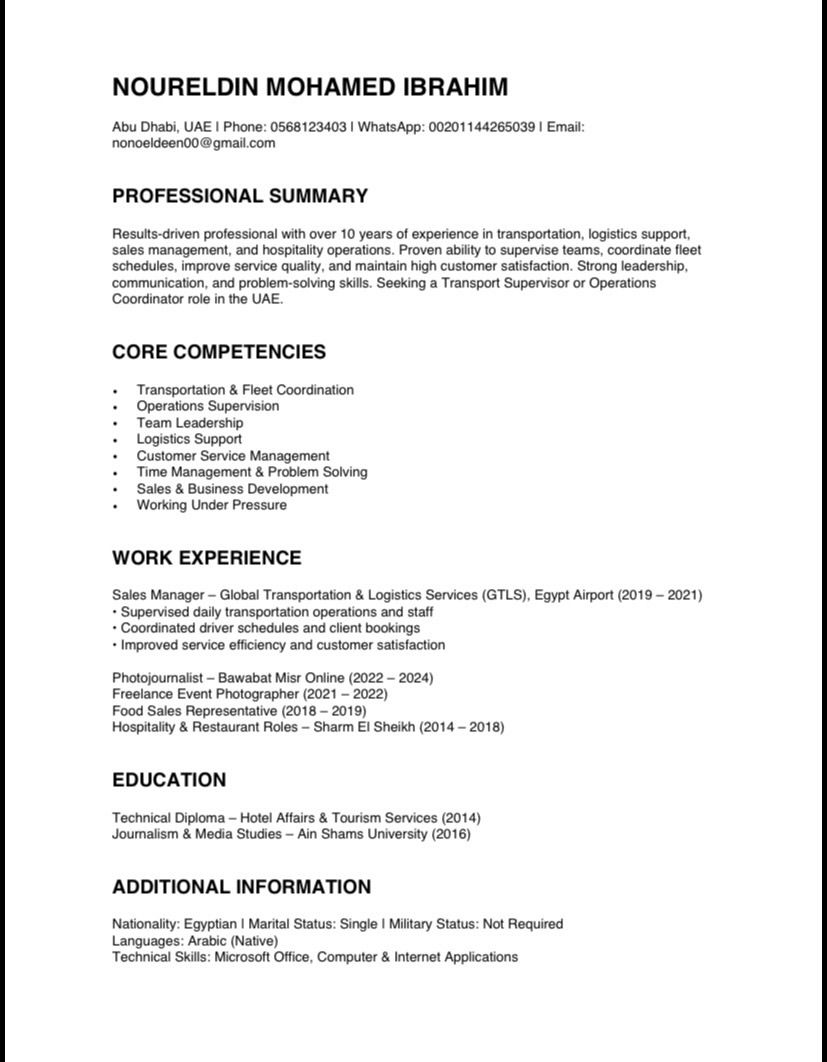 Hello, I am currently in the UAE and looking for a job opportunity. I am ready to start work immediately. I am a committed and hardworking person, and I am always willing to learn and improve myself. If there is any suitable job opportunity or if anyone can guide me to a job, please feel free to contact me