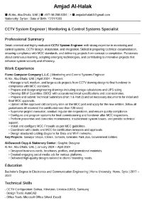 مهندس ELV معتمد من ADMCC، أقدم خدمات تصميم عن بعد لمخططات CCTV وفق معايير ADMCC في العين وأبوظبي، وتصميم أنظمة المراقبة لباقي الامارات. واعداد مخططات ELV, LOW CURRENT SYSTEMS Data وWiFi وSMATV وAccess Control وStructure Cabling مع التقديم عبر بوابة ADMCC حتى الموافقة النهائية. جاهز للعمل مع الشركات والمكاتب الاستشارية والمقاولين، ومستعد للعمل بدوام كامل عند توفر عرض مناسب