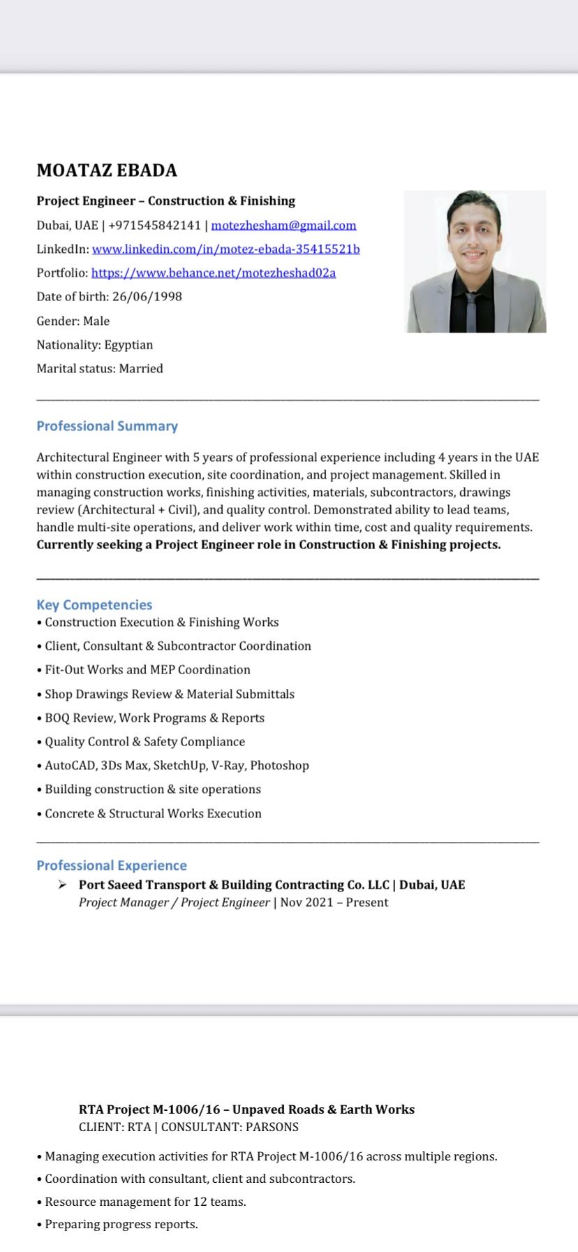 أنا مهندس معماري خبرة 5 سنين في الامارات ابحث عن عمل