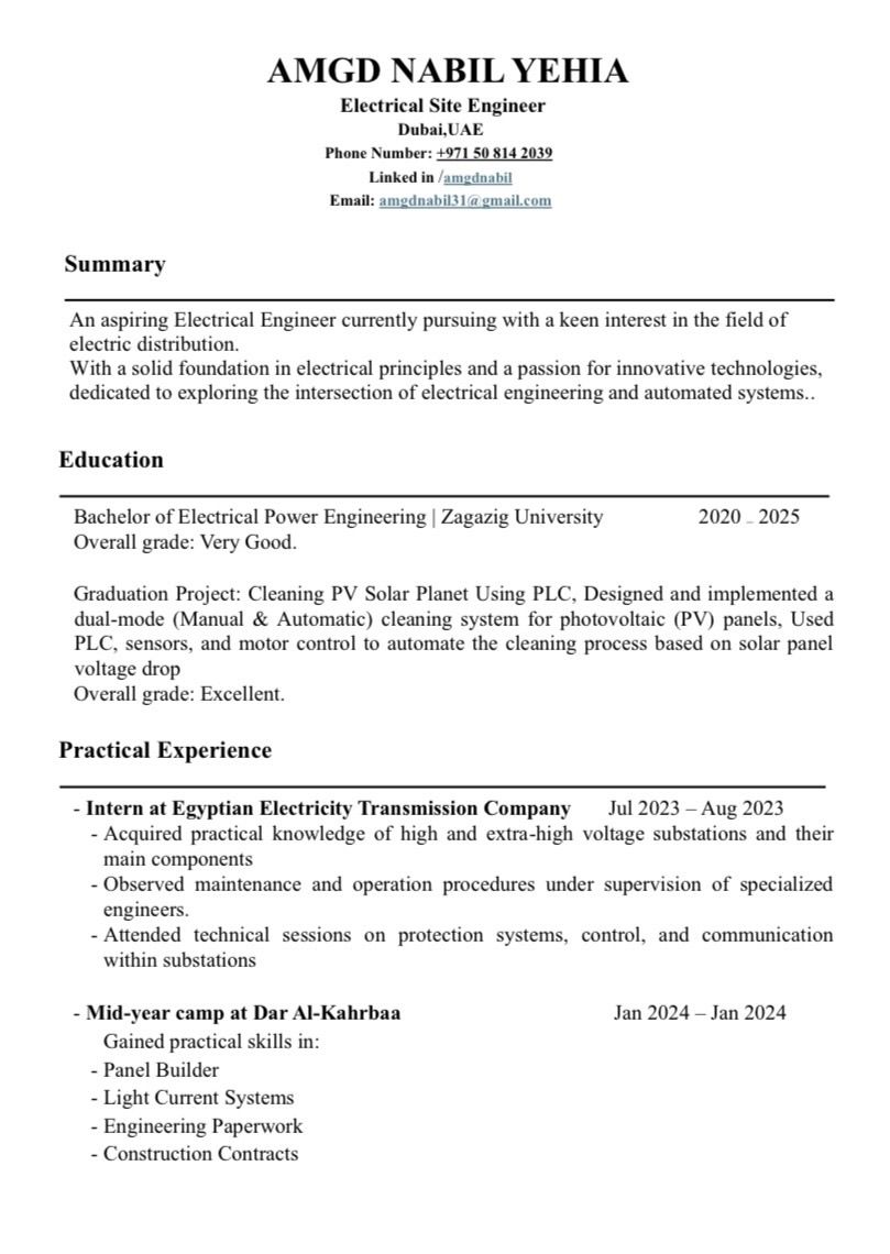 مهندس كهرباء موقع خبرة سنتين ابحث عن عمل داخل الدولة