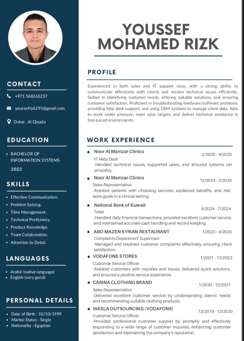 مهندس it شبكات مصري الجنسية موجود إقامة حر مقيم في الشارقة
