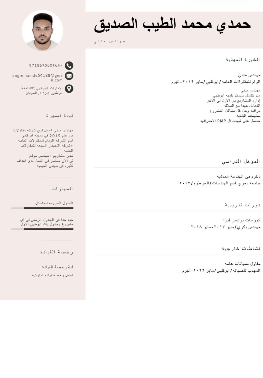 ابحث عن عمل أنا مهندس مدني خبرة داخل الامارات 6 سنوات/ 1 - حساب كميات 2 - تسعير مشاريع 3 - دفعات البنك 4 - سسيتم الم بيس 5 - ملم بالكل تفاصيل الموقع من بداية لين تسليم المشروع 6 - التعامل مع مقاولين الباطن 7 - توجد لي رخصة قيادة اماراتية 8 - التعامل مع الملاك 9 - محترف في عمل الجدول الزمني لي أي مشروع وجدول البنك عن طريق برنامج البرايمر فيرا والاكسل 10 - ملم بكل مودرين المواد والتعامل معهم 11 - ادرأه