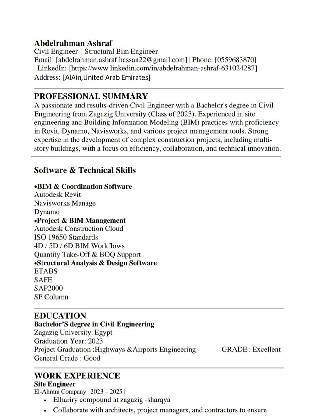 مهندس مدني (Civil Site Engineer) ابحث عن فرصة عمل داخل الامارات. لدي خبرة في الاشراف على أعمال الموقع وتنفيذ الأعمال الخرسانية واستلام الأعمال وقراءة الرسومات الهندسية ومتابعة العمالة بالموقع. متواجد داخل الامارات وجاهز للعمل فورا، وأسعى للعمل مع شركة مقاولات لاكتساب خبرة أكبر وتطوير مهاراتي في مجال التنفيذ بالموقع. للتواصل