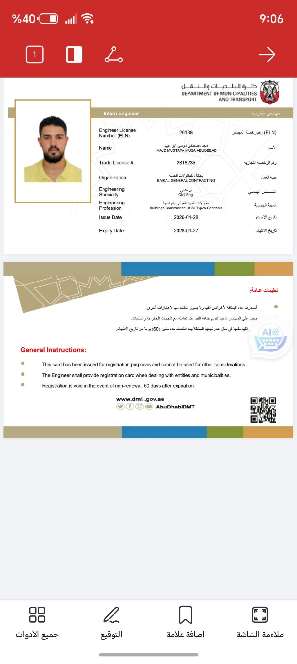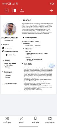 مهندس مدني خبرة سنتين يوجد لدي رخصة قيادة وإقامة