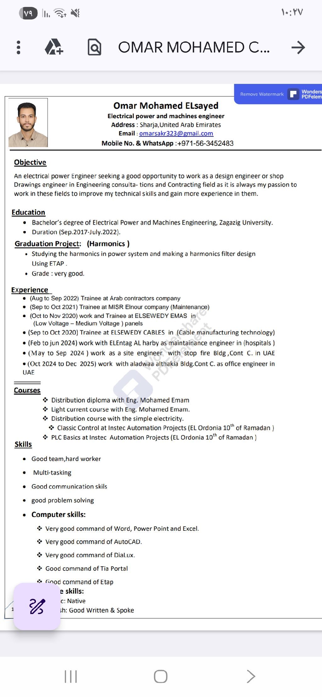 مهندس كهرباء خبرة سنتين بالمكتب الفني محتاج فرصة للعمل كمهندس مكتب فني شوب دروينج أو كمصمم MEP