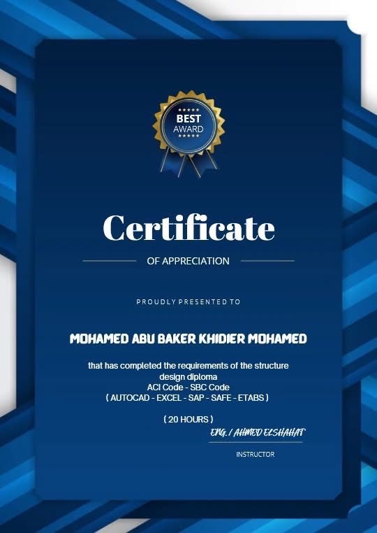 مهندس انشائي ذو خبرة في تصميم الفلل السكنية، مع اتقان استخدام برامج التصميم الهندسي مثل ETABS وSAFE وAutoCAD وProkon. لدي معرفة جيدة في اعداد أل Shop Drawings واخراج اللوحات التصميمية والانشائية باحترافية، بالاضافة الى القدرة على الاشراف على مواقع العمل وضمان تنفيذ الأعمال وفق المخططات والمواصفات المعتمدة. أتمتع بمهارات تواصل قوية والعمل ضمن فريق، مع امتلاك رخصة قيادة اماراتية سارية