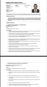 مهندس مدني بخبرة 9 سنوات في شركات المقاولات العامة في أبوظبي، حاصل على معادلة الشهادة، ورخصة قيادة، ومسجل لدى بلدية أبوظبي. خبرة في حساب الكميات، تسعير المشاريع، واعداد المناقصات لدي خبرة في إدارة المشاريع، والاشراف على أعمال الخرسانة المسلحة، واستلام الأعمال، مع الالتزام بالجداول الزمنية. أجيد استخدام البرامج الهندسية ونظام MEPS & FAB & TAM اجمع بين الخبرة الفنية والقدرة على إدارة فريق العمل