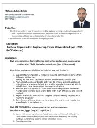 مهندس مدني موقع بخبرة 5 سنين في انشاءات المباني السكنيه والتجاريه وحصر الكميات ابحث عن فرصة عمل مناسبة حاصل على إقامة نظامية سارية لدي خبرة واسعة في تنفيذ وإدارة المشاريع وأتقن العمل على البرامج التالية AutoCAD Microsoft Office (Word, Excel, PowerPoint) أتميز بالدقة في العمل، إدارة الوقت بكفاءة والعمل ضمن فريق لتحقيق أهداف المشاريع بأعلى جودة (وجود رخصة قيادة)