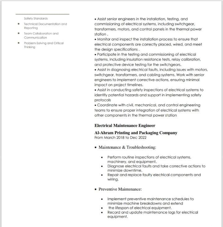 I am an Electrical Engineer with experience in Maintenance Engineering (previously worked in a printing and packaging company) Site Engineering (worked as a site engineer in a contracting company in Egypt) Currently working in a contracting company in Abu Dhabi I have been in the UAE for the past 7 months, and I am looking for a suitable opportunity in the field of Electrical Engineering
