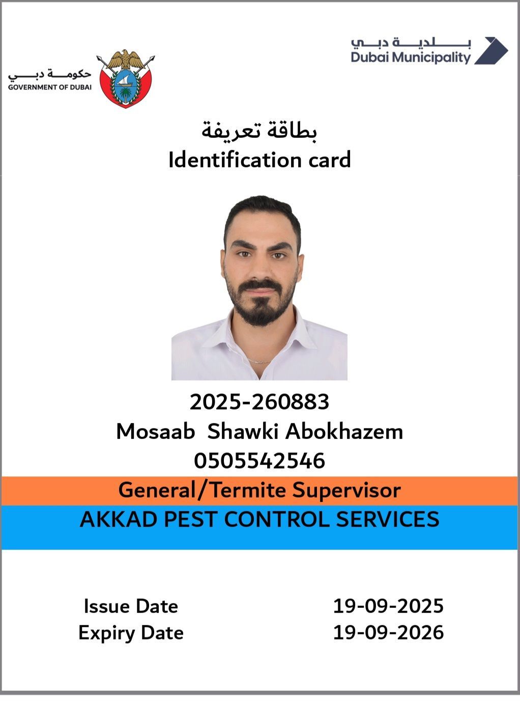 Dear all I am an agricultural engineer Mosaab Abo Khzam I have Dubai muncibility license Anti Termite and I have UAE driving license I am looking forward to be a member of your team, Please find the attached CV file. Thanks and best regards. Mosaab Abo Khzam