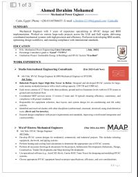 Mechanical/ HVAC Engineer BIM A Mechanical Engineer specialized in HVAC design, with 3 years of experience in engineering design and BIM modeling, including participation in multiple construction projects in the United Arab Emirates. Current Location Cairo, Egypt Seeking Opportunities in United Arab Emirates
