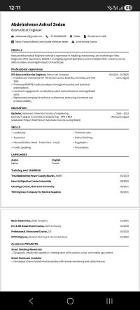 Biomedical Engineer with 2 years of experience in medical devices and IVD/ laboratory equipment. Currently based in the UAE with valid residence visa and UAE driving license. Skilled in sales support, product demonstration, and customer support with hospitals and laboratories. Open to opportunities in medical devices, diagnostics, and product specialist roles across the UAE. contact me for CV