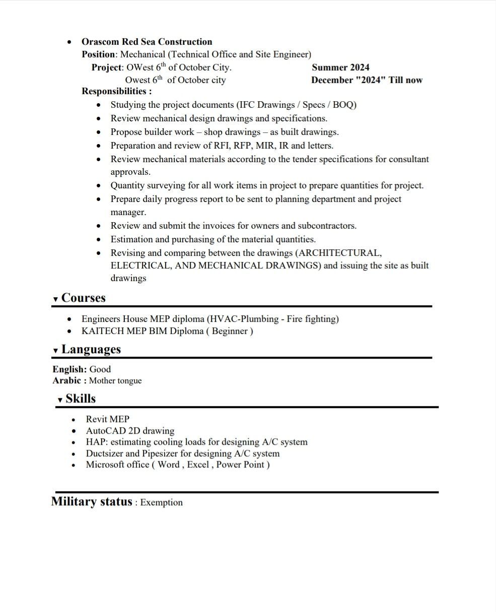 مهندس ميكانيكا تصميم ومكتب فني وتنفيذ في مجال (HVAC - Plumbing - Fire fighting) وأيضا مكتب فني وتنفيذ في مجال البنية التحتية ابحث عن فرصة عمل في الامارات وحاليا متواجد في مصر