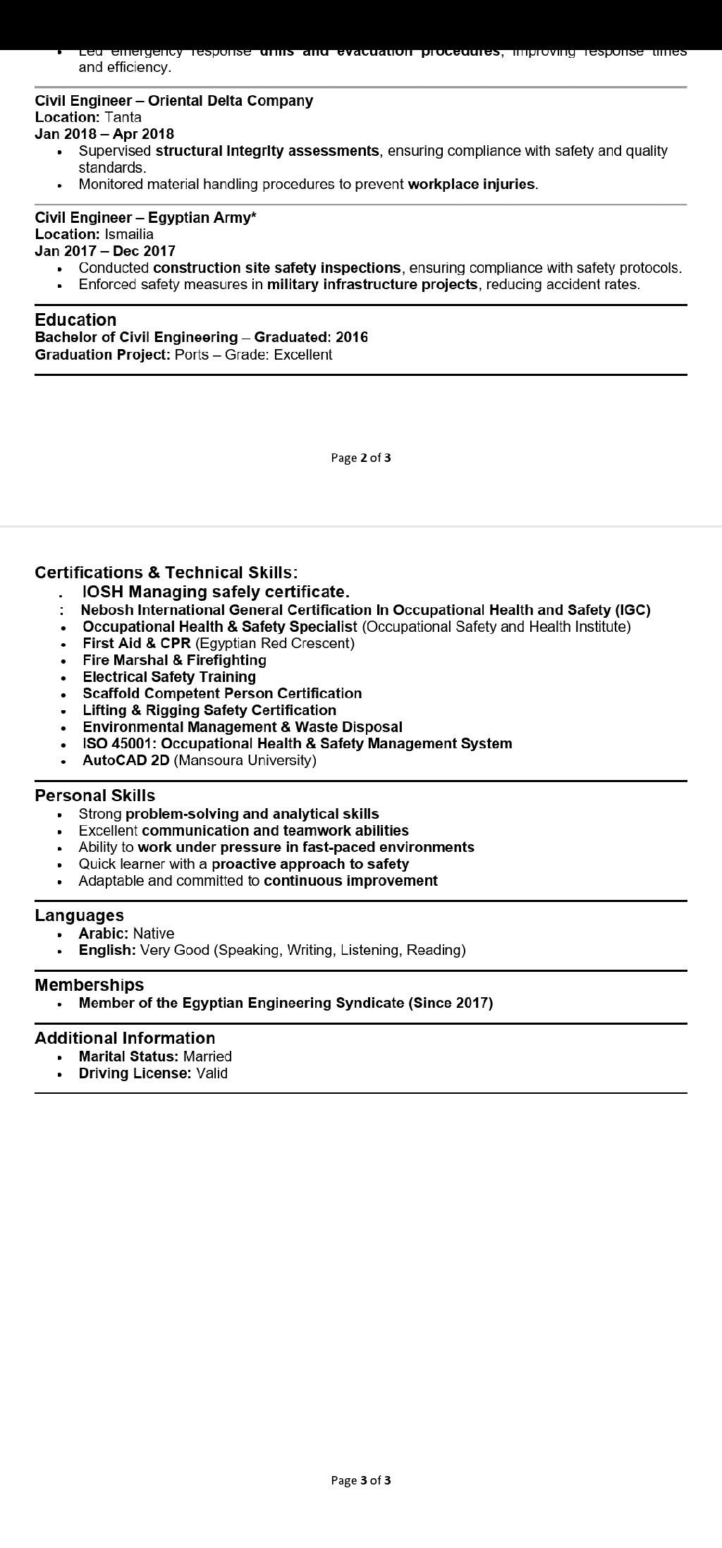 مهندس مدني دفعه 2016 خبرة في مجال السلامة والصحة المهنية 8 سنوات اشتغلت مصانع وكباري وانشاءات ومستشفيات ابحث عن فرصة عمل داخل الامارات
