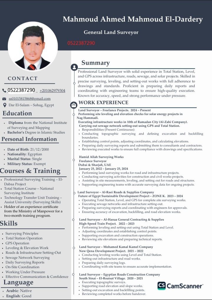 Search on an opportunity a job Engineer space Present in The UAE Work on device Balance stature and Total Station and device the gps