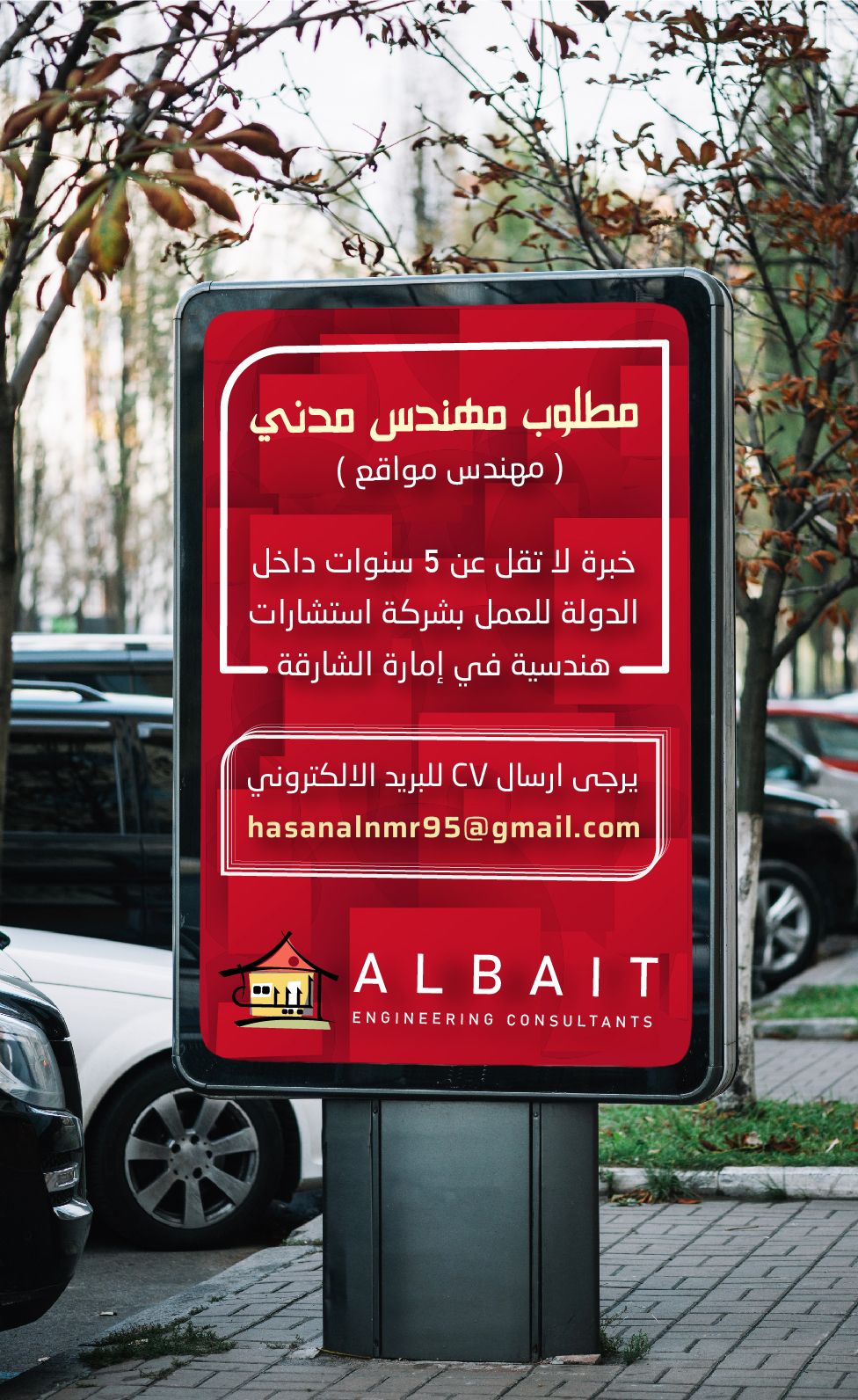 نبحث عن مهندس مدني مواقع للعمل بشركة استشارات هندسية في الشارقة المجاز 1 خبرة لا تقل عن 5 سنوات في الامارات للتقديم الرجاء ارسال CV للايميل التالي