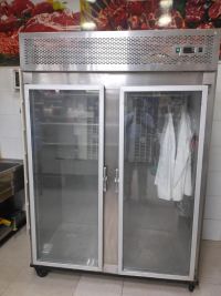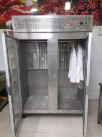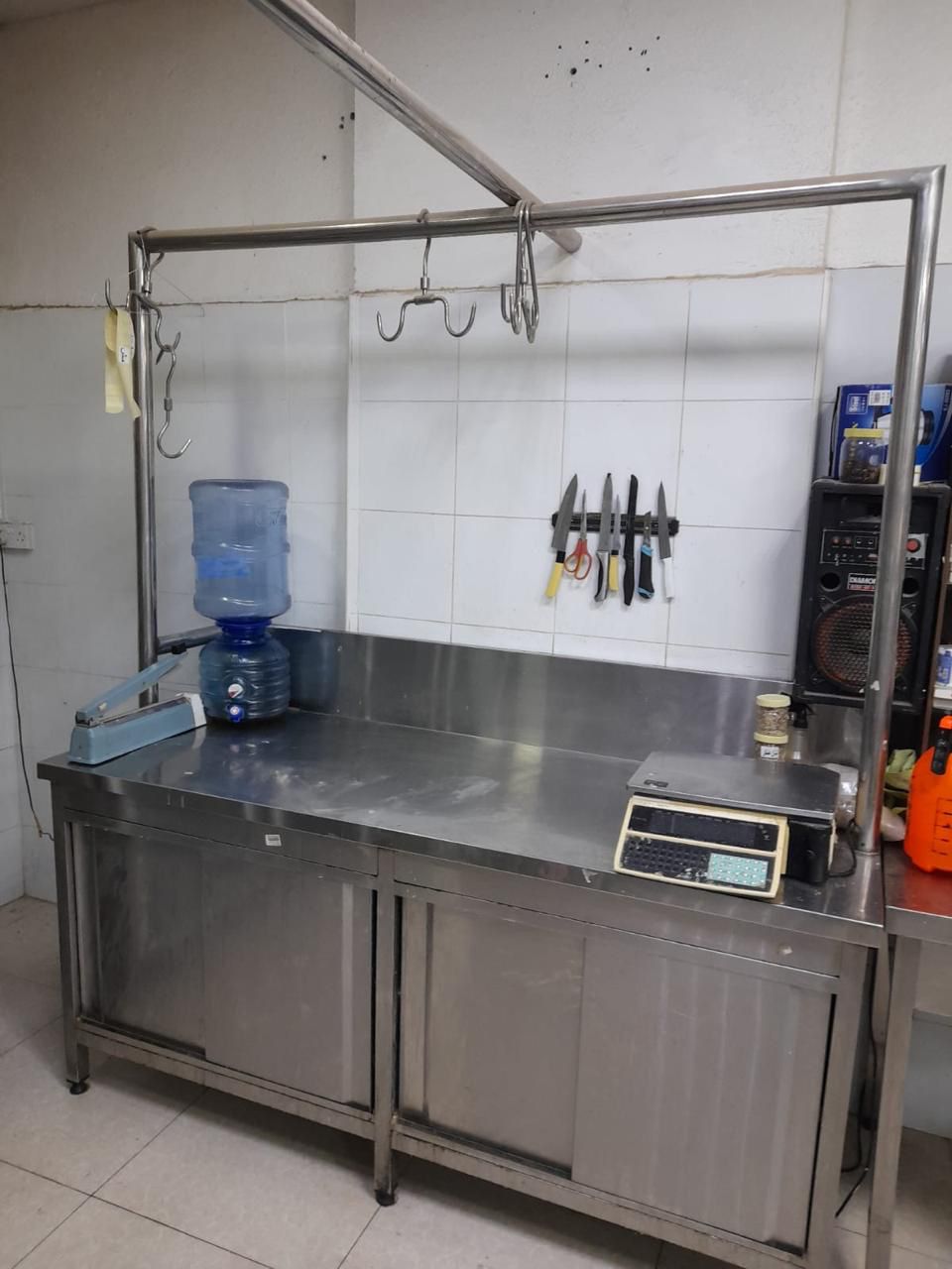 معدات ملحمة للبيع ثلاجة لحوم وطاولة تقطيع لحوم مع حديده لتعليق اللحوم. تلاجه لحوم بابين شركة (البيت الحلبي) استعمال خفيف جدا وطاولة تقطيع لحوم مع علاقة لحوم