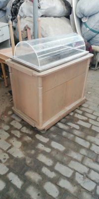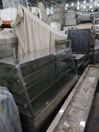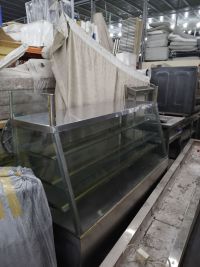 A four - tiered juice counter, measuring 170*70 cm, made of glass and stainless steel, is clean and attractively priced. There is also a small glass counter with a storage cabinet at the bottom for displaying drinks, cakes, and biscuits for cafeteria owners
