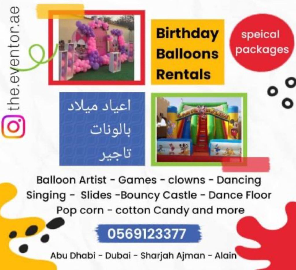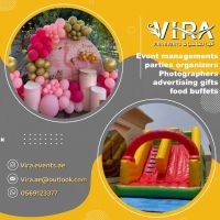 فيرا لتنظيم الفاعليات وأعياد الميلاد تأجير نطاطيات وزحلقيات وديكور الباللون والثيمات وماكينات الفيشار وشعر البنات والبطاطا والبان كيك والعديد من اكلات الاطفال كما يتوفر لدينا حفلات الكبار والخيم والمكيفات والكراسي والطاولات والبوفيهات والمقهويين والعديد من خدمات الحفلات والأعراس
