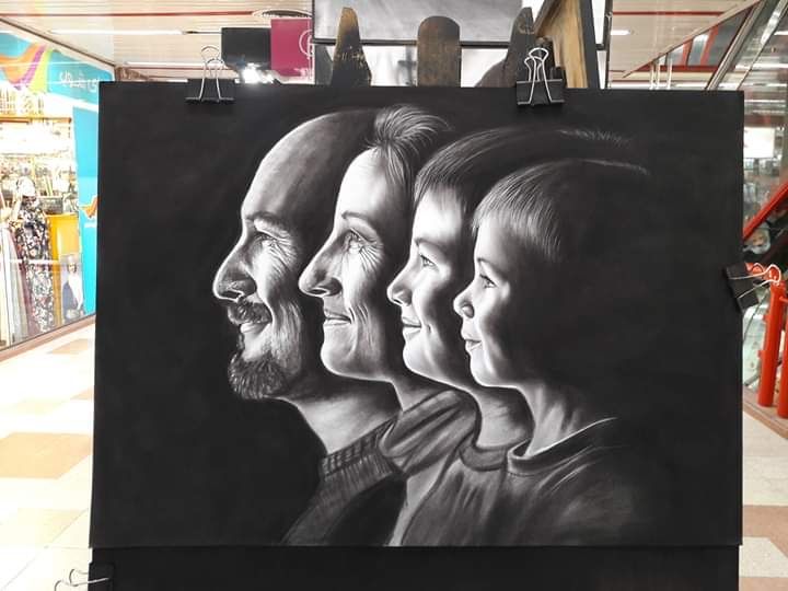رسم بالرصاص والفحم أحنا بنخلي الغائب حاضر - لو الصدفه مجمعتكش بصورة مع اللي بتحبهم أحنا هنجمعك بيهم من خلال الرسم علي ورق كانسون أبيض فحم أبيض - فحم أسود أقلام فيبركاستل أستيكه فحم