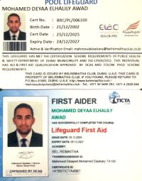 كابتن محمد ضياء مدرب سباحة ولياقة بدنية لدي خبرة أكثر من 3 سنوات عملت في عديد من النوادي رياضيه وأماكن السياحية وانقاذ ابحث عن عمل في مجال سباحة ورياضة لدي خبرة علاج المائي حاصل عديد من شهادات منها انقاذ معتمد من الامارات