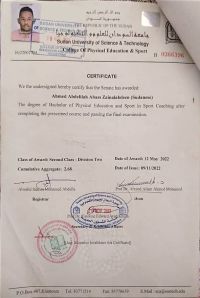 Swimming coach Graduate of the Faculty of Physical Education and Sports, Sudan University of Science and Technology, Bachelor's degree in Aquatic Physiotherapy Instructor and Lifeguard. Experienced in working with children with autism spectrum disorder. Proficient in all swimming strokes and styles