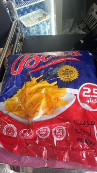 متوفر بطاطا مقلية. منشأ مصري. الكرتون 2.5 كيلو جرام. 4 أكياس. سعر ممتاز والكمية محدودة. جملة