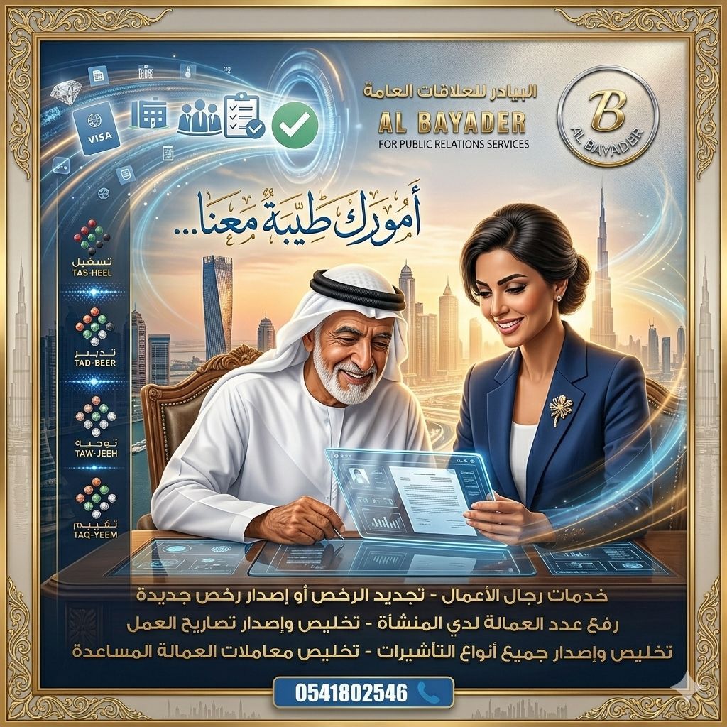 هل تبحث عن السرعة والدقة في انجاز معاملاتك شركة البيادر توفر لك حلولا متكاملة لتخليص كافة المعاملات الحكومية في دبي بأقل وقت وجهد تواصل معنا في أي وقت على مدار 24 ساعة