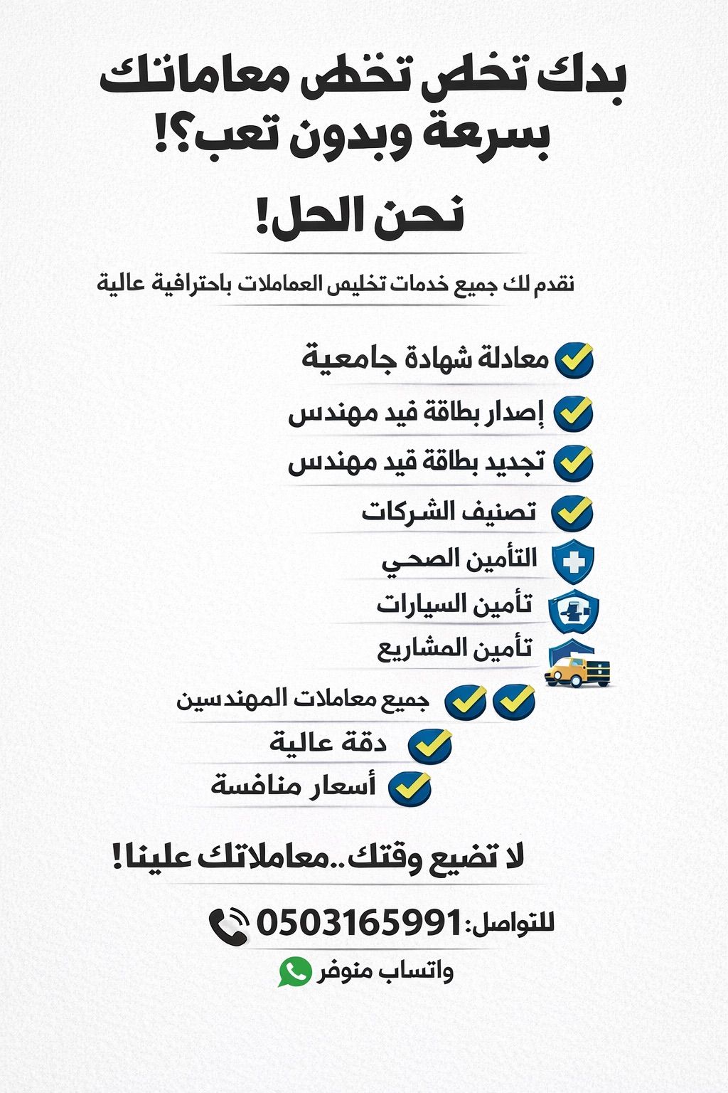 تخليص المعاملات مهندسين والتصنيف في أبو ظبي اصدار بطاقة قيد مهندس وتجديد بطاقة قيد مهندس ومعادلة شهادة خارج الدولة واسترداد الضريبة المسكن للمواطنين
