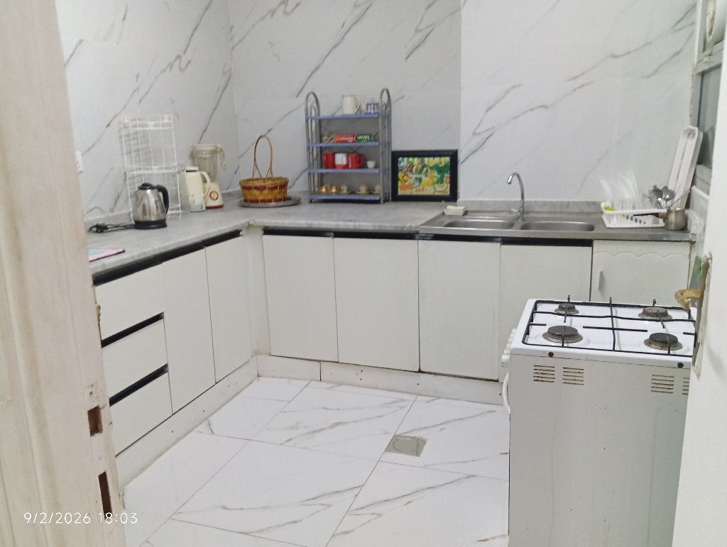 غرفتين وصالة في القصباء حمامين مطله على الحديقة مساحة 102 متر نظيفة وجاهزه للسكن وسعر هادي للجادين