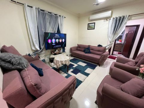 أجمل وأرقى شقة مفروشة غرفة وصالة في القليعة بفرش فندقي ثاني ساكن في بناية مرتبة وقريبة من جميع الخدمات وسهل الوصول الى مخرج دبي، وبسعر 3500