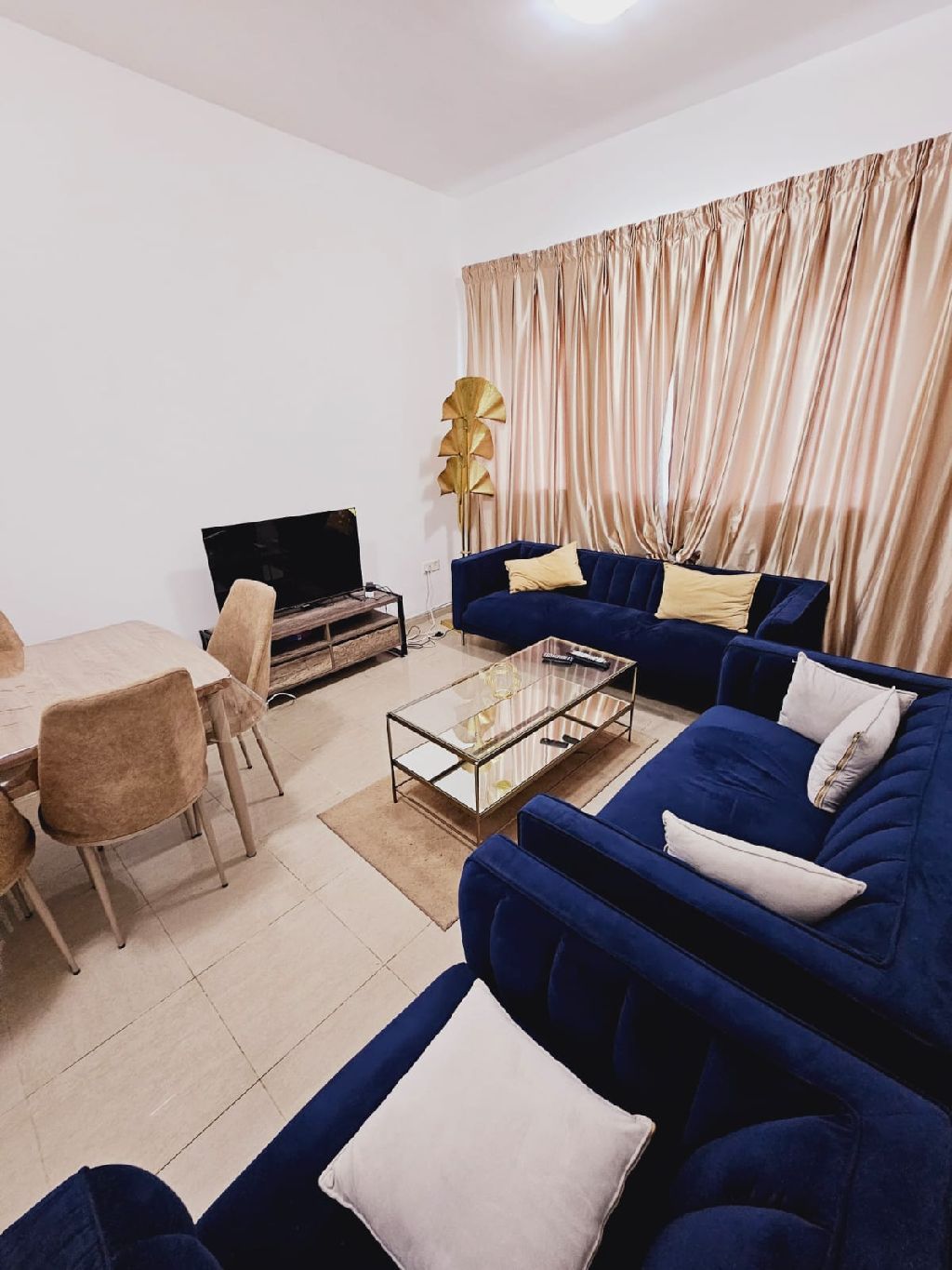 متوفر شقة مفروشة في الشارقة غرفتين وصالة الخان مقابل فندق تايم روبي 5500 مع نت تأمين 1000 (جاهزة للإيجار)