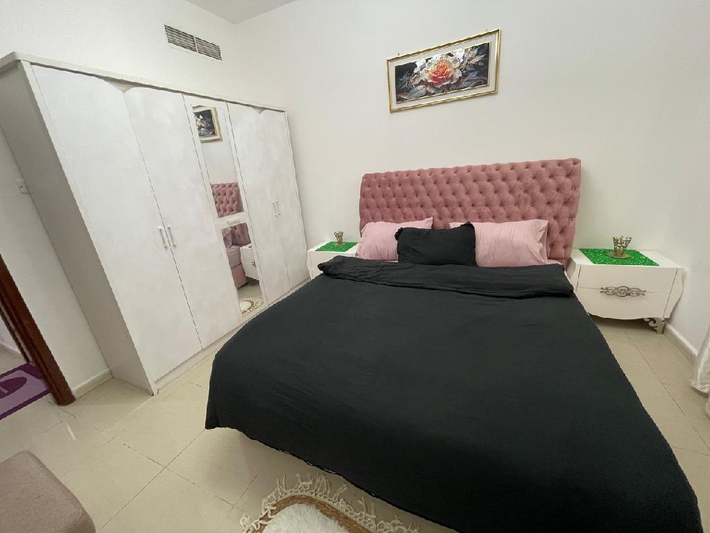 شقة غرفة وصالة كبيرة للإيجار الشهري بمنطقة التعاون اطلالة مميزه فرش فندقي نظيف تشطيب جديد بلكونه وتكييف مركزي وغاز مركزي مطبخ منفصل مناسب للعائلات وحمام تشطيب سوبر ديلوكس قريبة من جميع الخدمات ومخرج دبي وسهلة الوصول إليها