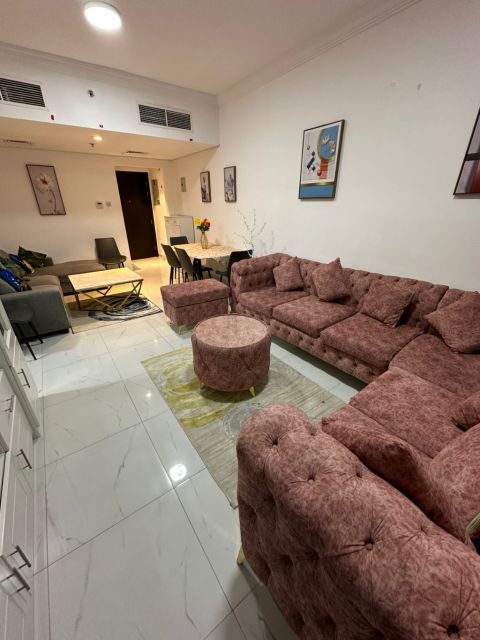 أفخم وأشيك شقة مفروش في التعاون ثاني ساكن غرفتين وصالة بتشطيب سوبر ديلوكس وتصميم جذاب وعصري باضاءة قوية وجميله باطلالة بحرية جميله جدا بإيجار شهري خيالي 5800 درهم فقط شامل انترنت وباركينج مجانا