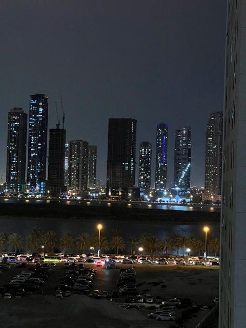 باطلالة ممتازة علي الكورنيش بمنطقة الجبيل في الشارقة يوجد شقة مفروش فرش نظيف غرفتين وصالة مساحة كبيرة مع 2 بلكونه مع 2 حمام للإيجار الشهري شامله الانترنت للتواصل