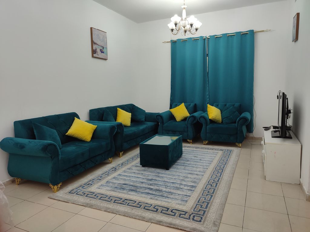 متاح من اليوم شقة غرفة وصالة عائلي فقط للإيجار الشهري أول ساكن لأصحاب الذوق الرفيع والهدوء فرش كله جديد مع أدوات مطبخ كاملة في الشارقة، شارع جمال عبدالناصر بجانب مطعم مشاوي الحلبية