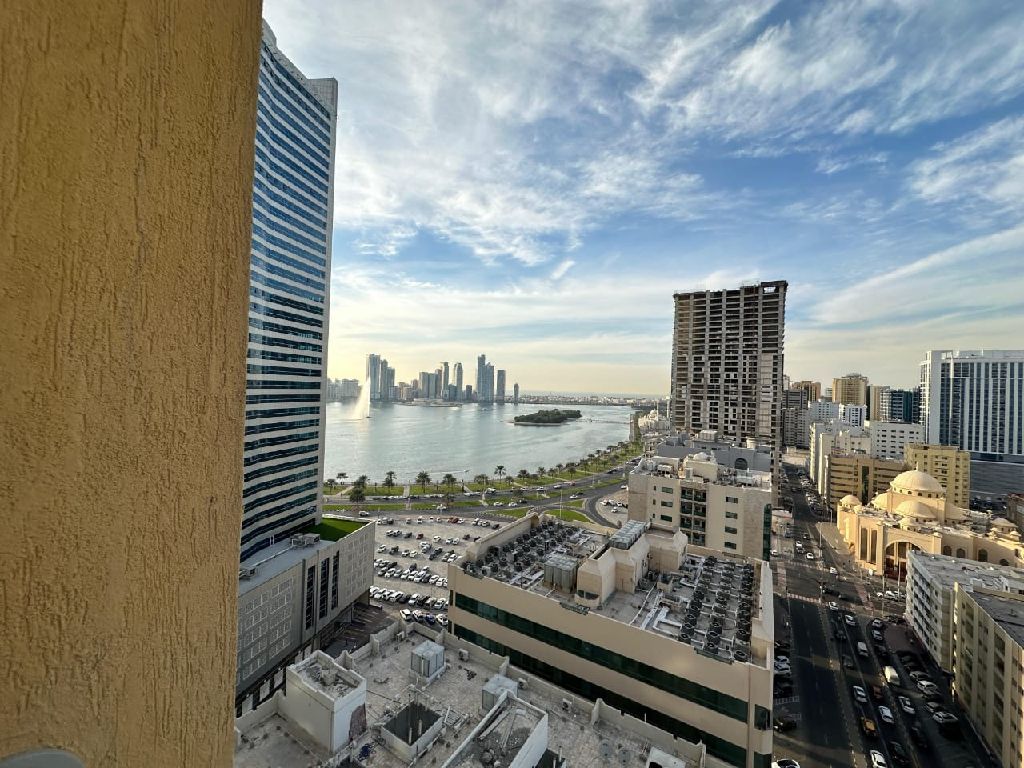 For monthly rent in Sharjah in Al Majaz area 2 near Gamal Abdul Nasser Street Two room apartment and a furnished hall including all bills only 5800