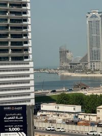 Two - bedroom apartment in Sharjah in Al Taawun for monthly rent 6000 dirhams with internet only, large area, two bathrooms, large balcony, direct sea view, close to all services, malls and restaurants. To contact, call