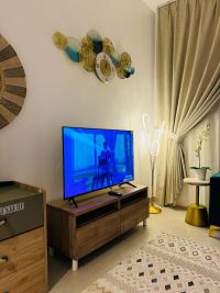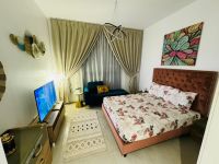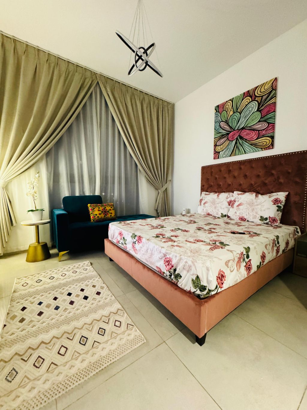 For rent in Sharjah - Al Mamzar, Maryam Island Spacious studio with balcony (second tenant) Furnished with hotel - style furniture Includes electricity, water, gas, and internet Parking, swimming pool, gym, and children'play area