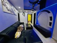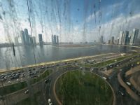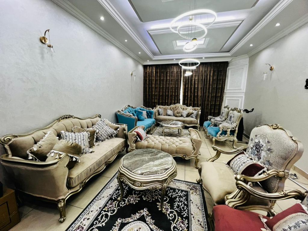The finest furnished two - bedroom apartment with a living room in Sharjah, featuring a sea view, located in a clean building close to all services, with flexible payment options in four installments