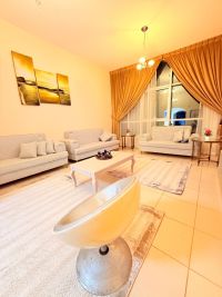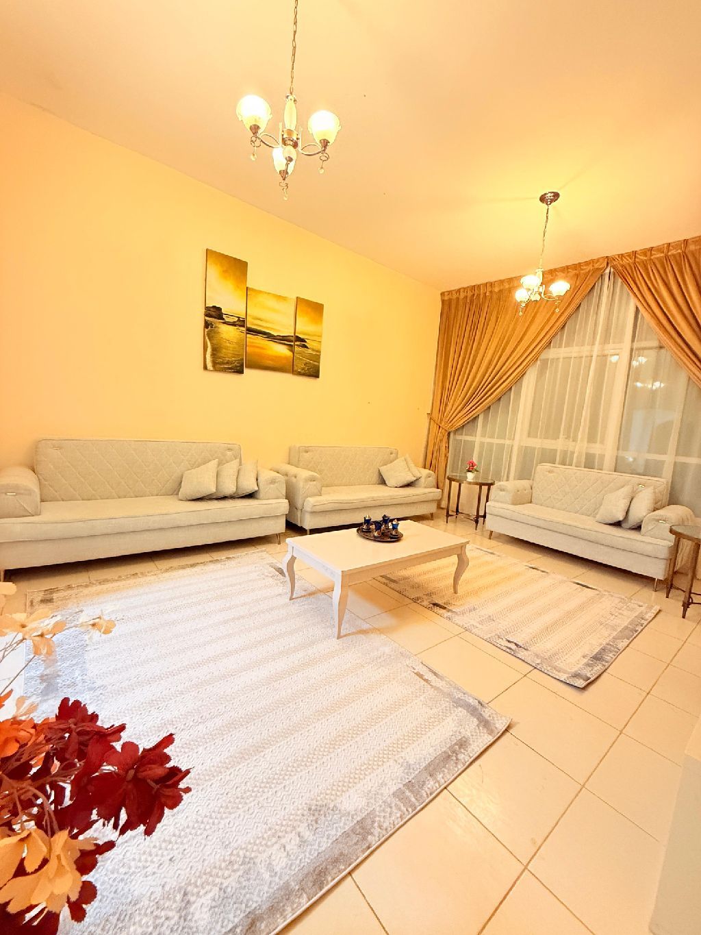 الشارقة الممزر. غرفة وصالة ومطبخ وحمامين فرش سوبر ديلوكس مساحة كبيرة. اطلالة ع بحيرة الممزر السعر 6500 مع انترنت