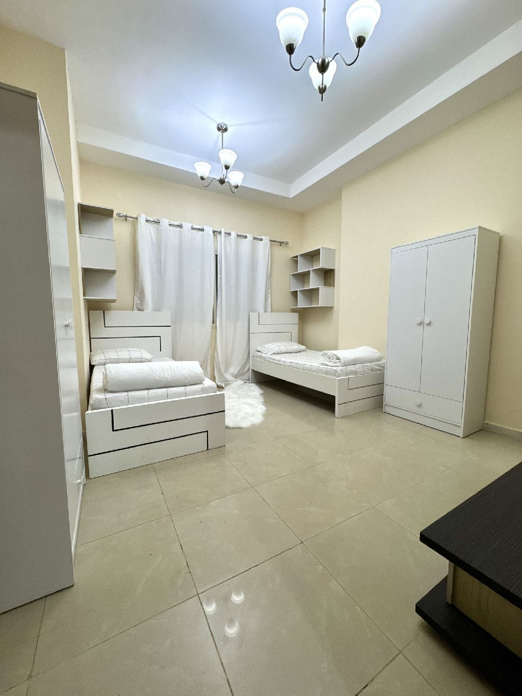 Two - bedroom apartment for rent in Al Nahda, Sharjah, behind Night to Night, opposite Sahara Mall, next to Nesto and Ansar Mall. Includes a bedroom for two, a living room, two large bathrooms, a kitchen, and a balcony with seating. High - speed internet (750 Mbps) Spacious layout. First occupancy. Gym nearby. AED5500 including internet only. Available from the beginning of January