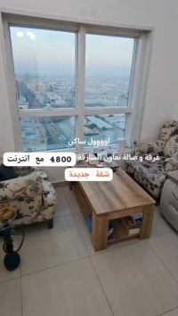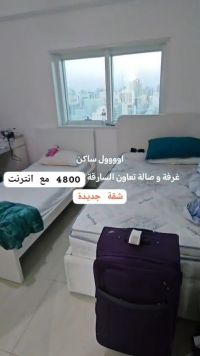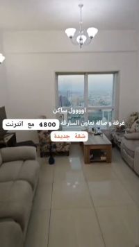 شقة مفروشه غرفة وصالة نظيفة ومرتبه التعاون الشارقة مع حمامين واطلالة مفتوحه باتجاه شارع دبي 4800 شامله الانترنت الحجز فوري
