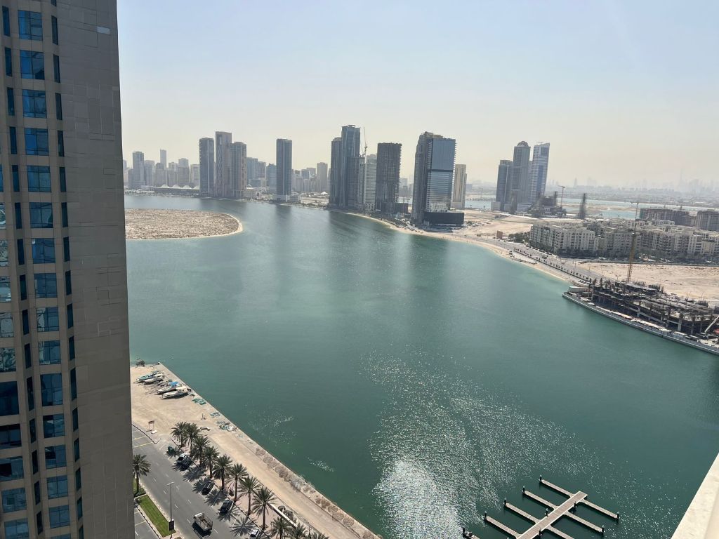 The best apartment in الخان، two bedrooms and a living room with hotel - style furnishings, ready for immediate move - in. It features a balcony with a distinctive sea view, an affordable price, and the rent includes internet. It also has a master maid’s room, located in one of the best areas of Sharjah, and very close to the Dubai exit