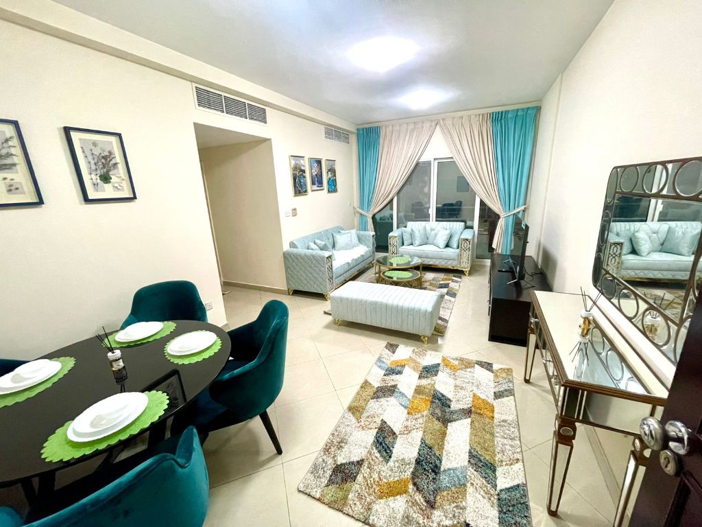Luxury furnished 1BR apartment in Al Taawun, first tenant, ready and available, modern finishing + central AC + open view + kitchen + bathroom, spacious and comfortable, close to all services and public facilities rent 5200