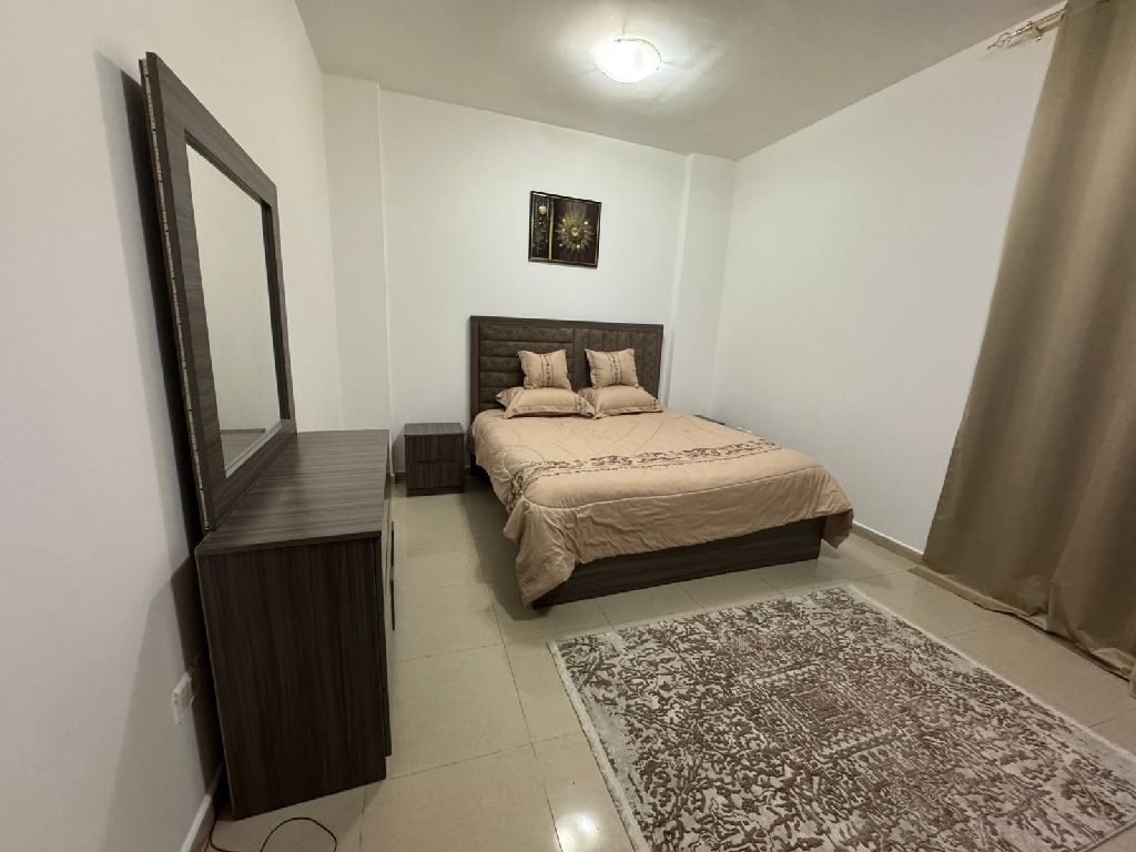 Two - bedroom apartment for annual rent in Al Majaz, prime location, super deluxe finishing, ready for immediate occupancy. Ideal for those seeking privacy and comfort, this spacious and distinctive apartment features a design that combines spaciousness and tranquility. It boasts a large living room for receiving guests and a separate kitchen for complete privacy, conveniently located near the Dubai